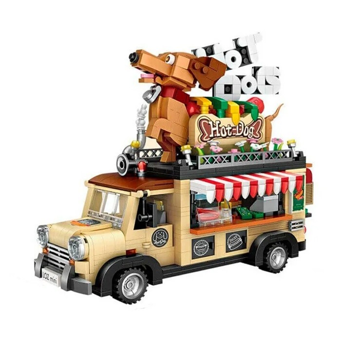 Kit de Construcción Carro de Hot-Dog Multicolor, estos agradables modelos de bloques en secuencia de construcción LOZ le permiten ensamblar una metrópolis completa, poblada de restaurantes de comidas rápidas, puntos de venta conocidos y edificios históricos, contiene 1317 piezas.